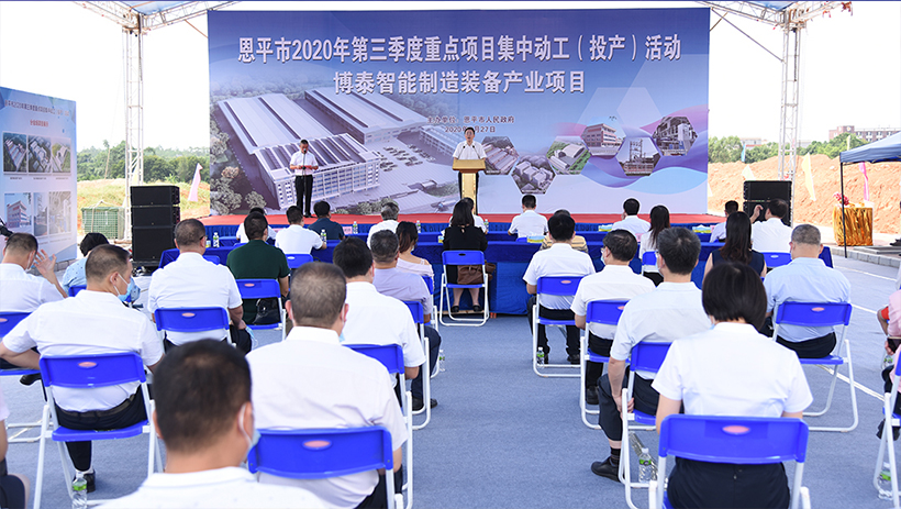 江门市副市长蔡德威,恩平市委副书记、市长刘兵,恩平市领导关凯宁、岑安林等参加今年会jinnianhui金字招牌智能制造装备产业项目动工仪式。