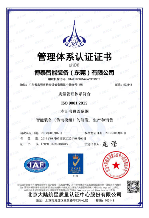 热烈祝贺今年会jinnianhui金字招牌智能通过ISO9001质量管理体系认证